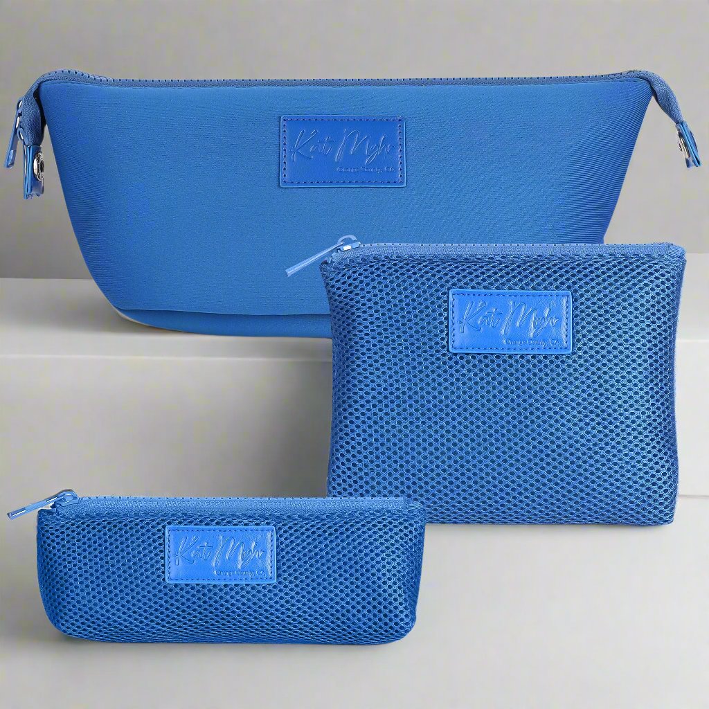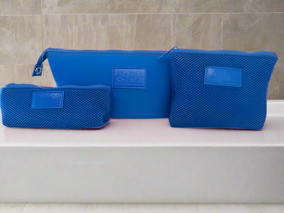 Kat Myhr Neoprene Toiletry Bag Set- Royal Blue